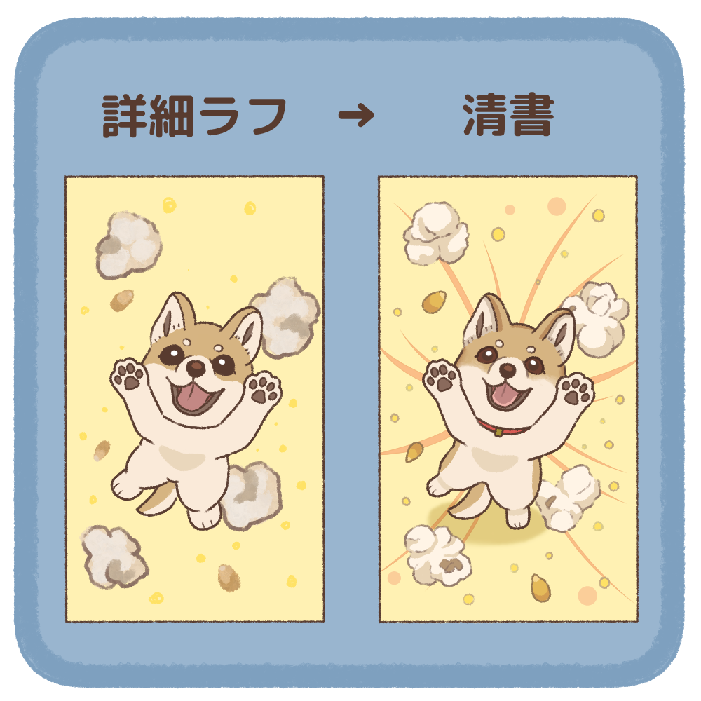 大まかなラフ提出後、構図やポーズなどの大幅な修正の際は別途追加料金がかかる可能性があります。