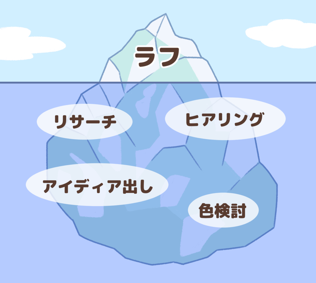 たとえラフ作成の段階であったとしても、イラストの制作にあたり、ヒアリングや、市場リサーチ、アイディア出しなどの目に見えない労力が掛かっています。